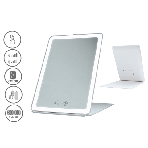 Miroir de maquillage pliable, glace de voyage éclairé, 3 couleurs, mode lumineuse, double puissance, Portable, Ultra-fin et Compact